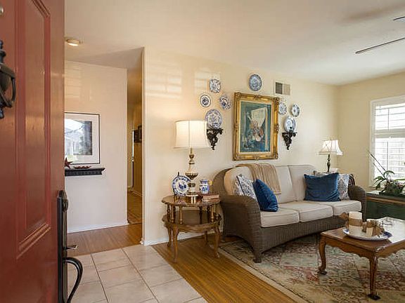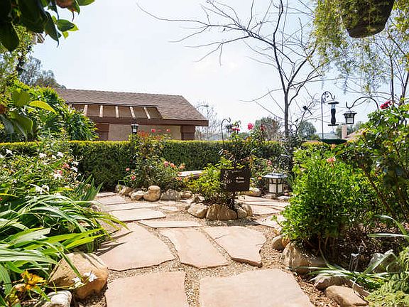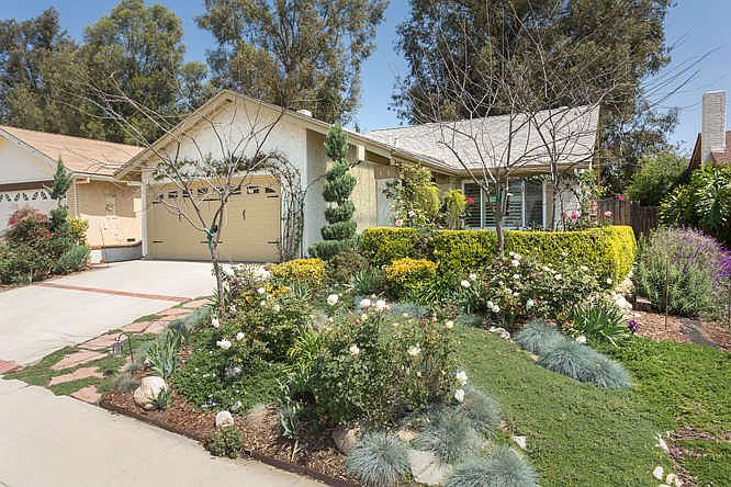 This English garden home in the desirable Peach Hill area features 3 beds 2 baths, updated custom painted kitchen, beautiful granite countertops and handcrafted tile on the back slash, fireplace in dining room, remodeled bathrooms, smooth ceilings, recessed lighting, newer windows, central A/C and heat, built in shelving in the closets, lush landscaped garden complete with a drip irrigation system in the front and back yards. In ground Spa, Fruit trees include Blood oranges, Pixie tangerines, Meyer lemons, Flame Seedless grapes, Blueberry grapes, strawberries and so much more. Close to Peach Hill Elementary. HOA boasts community pool, private park, club house, green belts, and walking trails. Dont miss this charming home!