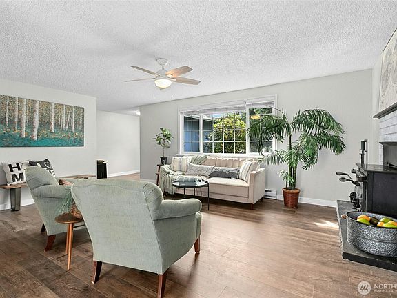 Don’t miss this charming 3-bedroom, 1.75-bath home on a sunny corner lot. Cozy & easy to maintain, this gem features an inviting fully fenced backyard w/ patio, terraced gardens, & fire pit-perfect for entertaining. Newer vinyl plank floors throughout the living area, warm wood-burning fireplace insert, ceiling fans, & energy-efficient double paned vinyl windows. Primary bath w/ double sinks, tile floors, & shower. Additionally: kitchen w/ newer appliances & butcher block counters, a newer roof (2017), fresh exterior paint (2023), newer water heater (2023) & a large utility room/garage storage add extra value. Just minutes from Deception Pass State Park and NAS Whidbey Island! Assumable 2.25% loan for qualified VA buyer.