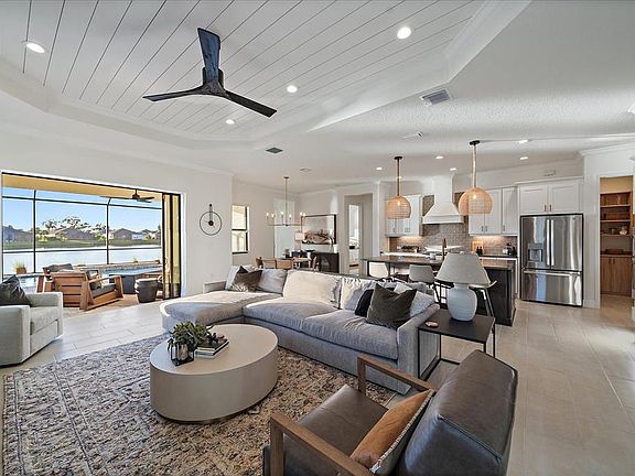 Welcome to 4319 Big Woods Way, an impeccably clean and pet-free upgraded pool home with water views in Parrish’s sought-after Canoe Creek community. Every detail has been thoughtfully enhanced, including crown molding throughout, custom Closet by Design buildouts in all closets and the walk-in pantry, and board-and-batten accents that add character and warmth. Inside, the open-concept layout features all-new light fixtures, tile floors in the main living areas, and a spacious 3-car garage. The chef’s kitchen offers custom cabinetry, a large island, walk-in pantry with custom buildouts, and a coffee station with wine cooler, all flowing seamlessly into the living and dining spaces. The custom-built gas fireplace and shiplap ceiling create a beautifully inviting focal point. A spacious indoor laundry room adds convenience and functionality. Sliding doors lead to the screened lanai, where you’ll enjoy a custom outdoor kitchen with gas grill, sink, and mini fridge—perfect for entertaining. Automatic roll-down privacy blinds let you relax comfortably at any time of day. The private heated pool and yard overlook a serene lake, completing your outdoor oasis. The primary suite features generous custom closets and a spa-style bath, while the additional bedrooms each include custom storage and designer wall treatments. A flexible den offers ideal space for a home office or playroom. Canoe Creek residents enjoy low HOA fees, no CDD, and exceptional amenities: a resort-style pool, clubhouse, fitness center, pickleball, dog park, and walking trails—plus convenient access to schools, shopping, Lakewood Ranch, Sarasota, and St. Pete. Homes with this level of custom craftsmanship and thoughtful design simply don’t come on the market often. Call today to schedule your private tour and experience it for yourself!