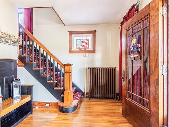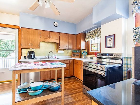 This 4 bedroom 1.5 bath with a detached 2 car garage is a MUST SEE. This charming home blends old world charm and modern aesthetics. The main floor offers a great kitchen space with a new electric range, a large dining room and a cozy living room. Follow the original hardwood floors upstairs where you find 4 large bedrooms with an abundance of closet space and a full bath. The dry basement has more space than one can imagine with a 1/2 bath. Outside, you will find a detached 2 car garage and gorgeous yard. The Hot Tub will remain on the large,private deck where you can relax after long days. A peaceful front and back porch for your relaxation.