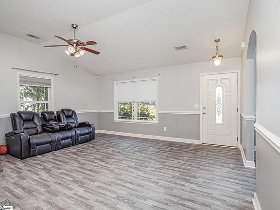 Welcome to 432 Blairwood Ct — a beautifully maintained 2-bedroom, 2-bathroom home nestled on a private 0.35-acre cul-de-sac lot in Spartanburg. With no HOA, underground utilities, and a fully fenced backyard, this home is perfect for buyers who value privacy and simplicity. Inside, you’re greeted by a light-filled living area with soaring vaulted ceilings and durable luxury vinyl plank flooring that flow seamlessly throughout. The spacious kitchen features granite countertops, matching black appliances, and stylish charcoal grey cabinetry. The primary bedroom offers generous space, natural light, and ceiling fan comfort. Outside, enjoy the fenced backyard with a patio perfect for grilling, and a handy storage building for tools and gear. Whether you're a first-time buyer, downsizer, or investor — this home delivers comfort, style, and convenience.
