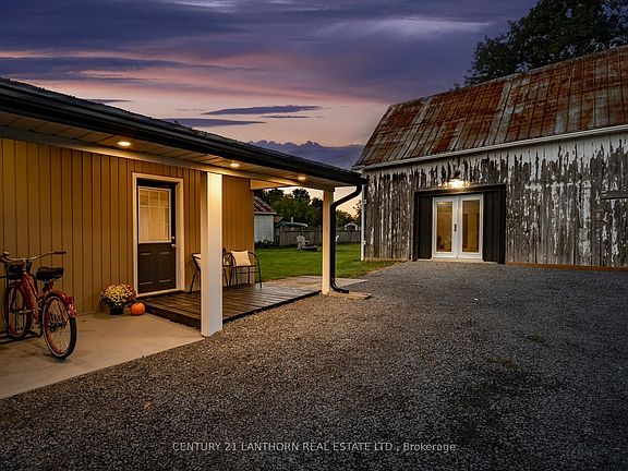 Welcome to your dream home! This beautifully renovated 3-bedroom, 2-bathroom residence perfectly blends modern comfort with original Century home charm. As you step onto the inviting covered porch, you will immediately feel at home. Inside, the spacious layout features bright, airy rooms adorned with classic details that have been thoughtfully preserved - hints of the exposed beams in the family room and on the stairs, original wood floors, charming original door (repurposed as a barn door to create separation from the family room to kitchen), the original door bell on the side door, and more. The heart of the home is a warm and welcoming, open concept living and dining area, ideal for gatherings with family and friends, completed with charming bay window. The brand new contemporary kitchen boasts sleek finishes and ample storage, making meal preparation a delight. The storage room off the kitchen can be used for off-season clothing, or as a walk-in pantry. The modern appliances are included with the home and the kitchen is roughed in (electrical and plumbing) for a dishwasher if you choose. Main level laundry is cleverly placed in an oversized closet off the family/flexible room. Each of the three bedrooms upstairs offers a serene retreat, with large windows allowing natural light to flood in. The two bathrooms have been updated with stylish fixtures and finishes, ensuring both functionality and luxury. Step outside to discover your expansive oversized lot, perfect for outdoor activities, gardening, a bonfire or simply enjoying the fresh air and views of open hay fields at the rear. The versatile barn provides endless possibilities, whether you envision it as a workshop, studio, garage or additional storage space. With its charming details, spacious yard, and flexible barn, this home is a rare find that offers both tranquility (right in town) and potential. Don't miss your chance to make this enchanting property your own, absolutely turn key for first time buyers.