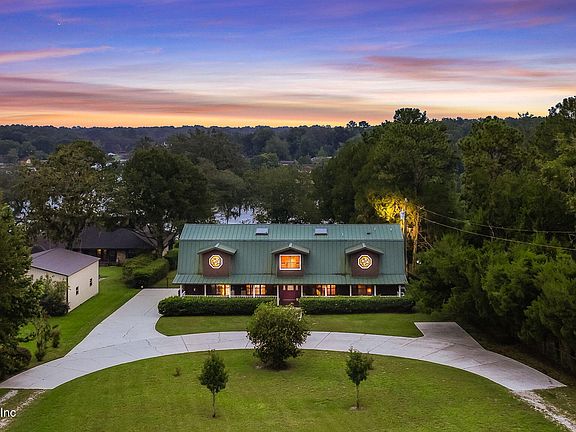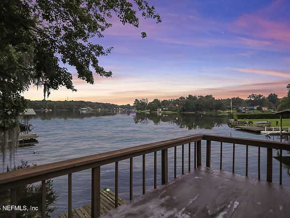 Welcome to your dream lake house, a genuine log cabin perfectly situated on the serene shores of a private lake. This waterfront paradise offers breathtaking views from every room, creating a tranquil and picturesque living experience. You can relax on the covered front and back porches, designed for unwinding while soaking in the beauty of your surroundings. Whether you're an avid boater, water skier, fishing enthusiast, or simply enjoy a refreshing swim, your backyard serves as a playground with two docks, including a sundeck, just steps away. The 1.38-acre lot is set back from the road, ensuring privacy and plenty of space in both the front and backyard. The cabin features a new metal roof and metal fencing added in 2020 for durability and a touch of modern style. With various outdoor entertainment areas, this property is perfect for hosting gatherings or enjoying the outdoors. Additionally, an RV hookup with a pad is available for those who love to travel while having this waterfront haven to return to. This property represents a great opportunity for a second home, an Airbnb investment, or even your primary residence. Conveniently located just minutes from the new SR 23 connector, it offers easy accessibility while maintaining a sense of serene seclusion. Plus, it benefits from A-rated schools in Clay County, making it an incredible opportunity for families. Don't miss your chance to own this slice of paradise. There is not a better deal on the market, than this one! Schedule your appointment today!
