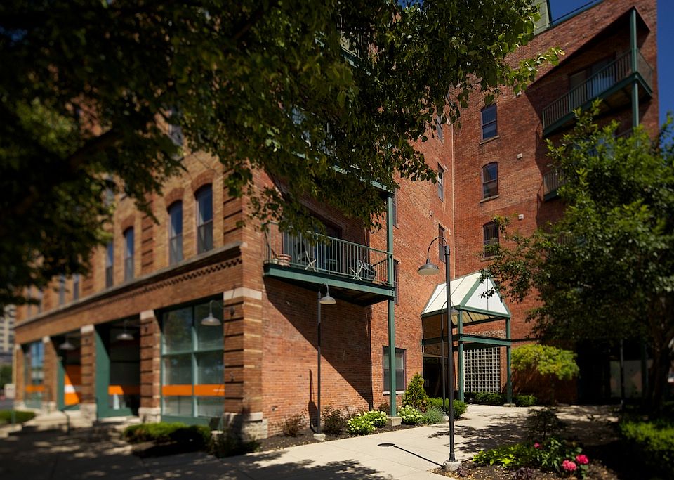 LISTED EXCLUSIVELY BY columbusLOFTS.com - Call Nate Caplin, Realtor, at 614-28-LOFTS for more information or to schedule a showing.... Beautifully updated authentic urban loft condo. Oversize 1BR corner unit with 2 full baths, including newly remodeled master bedroom & bathroom suite ripped from the pages of Dwell Magazine or a W Hotel: glossy marble walk-in shower w/espresso furniture-like built-ins. New dark hardwood floors, exposed brick walls, chic finishes including very cool photographic wall paper in dining room and master bedroom. Lots of storage including custom mirrored wall of storage units in master suite. Open eat-in kitchen with big island. Big west windows with views of Downtown Columbus skyline in distance. In-unit W/D. Quiet Discovery District location one block from Topiary Gardens & Park. Parking included. Established condo building with nice common areas, including rooftop deck for residents. SEE http://columbusLOFTS.com FOR DETAILS ABOUT THIS AND OTHER SIMILAR PROPERTIES IN AND AROUND DOWNTOWN COLUMBUS.