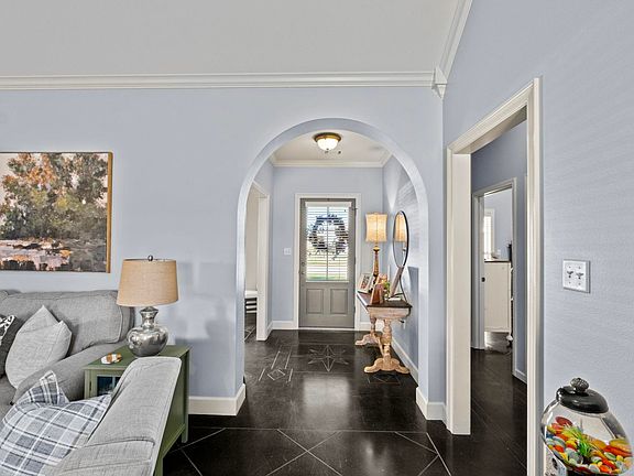 Welcome to this beautifully updated 4-bedroom, 3-bathroom home with a spacious 2,352 sq ft split floor plan. The home features tall arched ceilings, a separate dining room, and a cozy fireplace equipped with gas logs and a blower. Enjoy the fresh new paint, a brand-new water heater, and stunning granite countertops in the kitchen and bathrooms. The kitchen boasts custom cabinetry with new paint and a central island topped with granite. The luxurious master suite offers patio access, a large soaker tub, a walk-in shower, and a generous closet with convenient laundry access. Every bedroom comes with walk-in closets, and the secondary bedrooms are connected by a spacious Jack and Jill bathroom. French doors add elegance in various areas of the home, complemented by recessed lighting throughout and stained concrete flooring. The fully fenced backyard is perfect for entertaining, with a newly stained fence, a new double iron rod gate, and side fencing. Relax on the covered patio or take advantage of the two-car garage for extra convenience. This home is move-in ready!