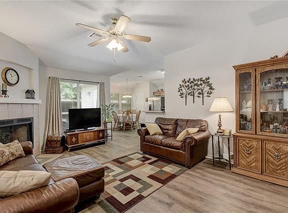 This charming, move-in ready home in Katy Crossing features vinyl plank flooring throughout with a spacious living and cozy fireplace to welcome you inside. Large, Open Kitchen with plenty of storage, space to create and cozy breakfast nook with plenty of natural light. Enjoy the shade beneath the trees in this large backyard complete w/patio. Walk to Elementary & Middle Schools, 2 blocks from Playground, and 1 mile from San Gabriel Park. Easy Access to 130 Toll & IH-35.