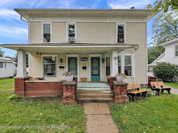 Classic two story duplex located in downtown Portland. Inviting front porch leads to two story units. 432 is a 3 bedroom, 1 bath unit with a main floor bedroom, attached one car garage and new windows in 2018. 434 is a 2 bedroom, 1 bath with main floor laundry and a detached one car garage . Home sits on a tree lined street and is steps from Portland's river trail, down town restaurants, parks and splash pad. Conveniently located just off of I96 half way between Lansing and Grand Rapids