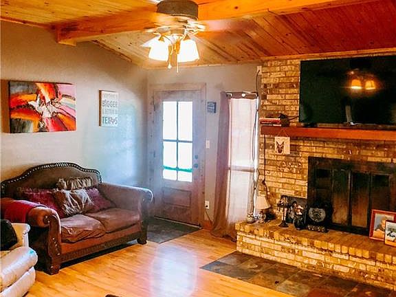 This 3 bedroom, 2 bath brick home in Lakewood Addition is in a family-friendly neighborhood. Kitchen has beautifully updated cabinets and tile countertops. Wood-burning fireplace, metal roof, and large detached garage - storage room complete with water and electric. At the back of the property is another outbuilding for extra storage. Set on 1.771 acres with a chain-linked fenced backyard for your pets.