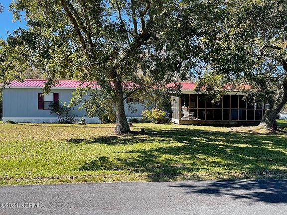 Have you been looking for that special spot on Cedar Island to call home? This may be it! 1991 2BR-2bath, with open common area. This 2nd row lot is in a x-flood zone ( & no flood insurance is required). Good views of Cedar Island Bay. There is also a 10'x24' screened front porch, and new rear steps. A new roof was installed in in 2010, and the siding replaced as well. (There are soft spots in the floor that were not repaired after the nre roof was installed, and it is being sold ''as is''). Perfect for a hunting or fishing camp. Beautiful live oak trees. Just 1.4 miles to Lewis' Creek and the Wildlife boat ramp.