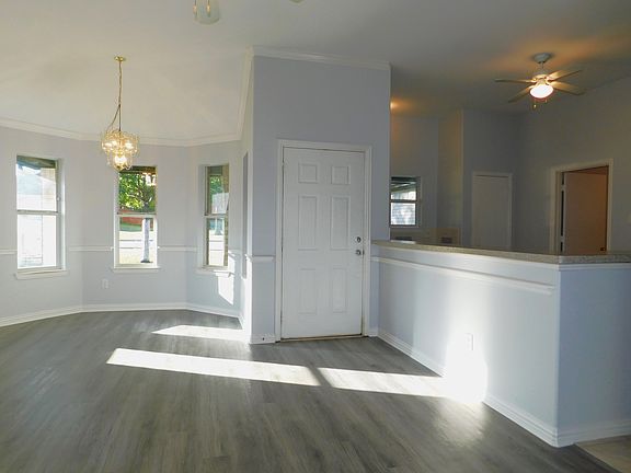 Nicely updated two bedroom, two bath home in Ponder. Two separate living areas divided by a large centerpiece stone see-through fireplace. Kitchen includes breakfast bar and refrigerator. Primary bath has dual sinks, garden tub, separate shower and walk-in closet. Luxury vinyl plank flooring and fresh interior paint throughout. Washer & dryer included.