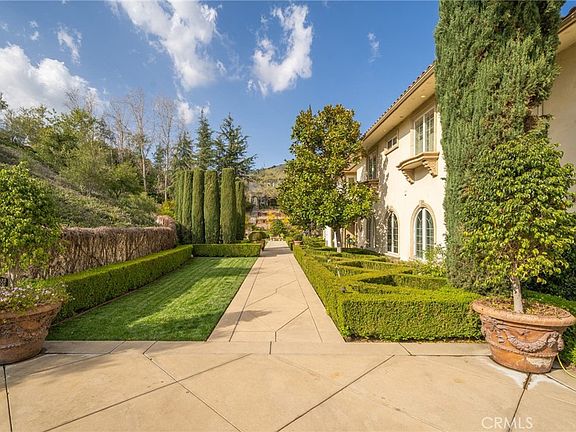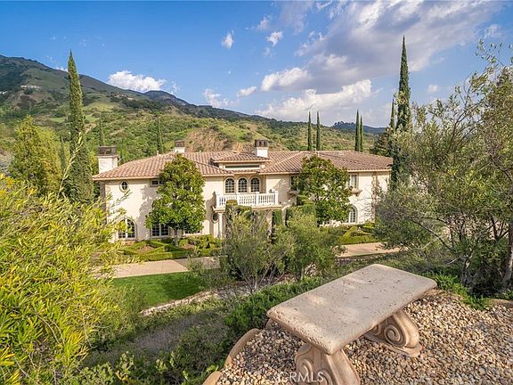 Gorgeous View Estate! Beautiful custom built 7,617 SqFt Italian estate nestled in a private North Glendora exclusive neighborhood on a spacious 92,304 SqFt lot with amazing canyon and hillside views. Picturesque location sets the stage for this wonderful family home with sprawling lawns, gorgeous landscaping and hardscape, manicured gardens, soothing stream that runs along the property, and amazing backyard oasis with large patio deck, balcony with amazing views, outside dining area overlooking infinity pool and spa, fire pit with picturesque columns, built-in BBQ with seating area, and separate lawn play area. Private walkway leads the way to gorgeous front porch and into formal entry with sweeping iron staircase and wood beamed high ceiling, private office with front facing windows with gardens views, built-in bookcases, and cozy fireplace. Spacious living room with detailed crown molding, large windows, and marble fireplace, open gourmet kitchen with granite counters, center island, stainless appliances, walk-in pantry, and kitchen eating area with French doors to outside patio. Kitchen is open to large family room with movie projection system and screen, fireplace, built-ins, front facing windows with under window seating area, and built-in bar area. Downstairs also features a spacious bedroom/bathroom suite with shower, powder room, a work from home desk area with extra storage, and a bathroom with shower. Upstairs features a large master suite with double door entry, retreat with relaxing fireplace, spacious walk-in closet, and luxurious master bathroom with dual sink vanity, spa bathtub, and shower. Four additional upstairs en-suite bedrooms with fireplaces and large closets (two bedrooms share a Jack and Jill bathroom), spacious laundry room with ample storage, and an amazing 960 SqFt bonus room/7th bedroom complete with walk-in closet, kitchenette, full bathroom, and separate entrance with spiral staircase leading to pool deck. Four car attached garage, ample parking, and private gated driveway. Located in the award-winning Glendora School District. This home shows beautifully!