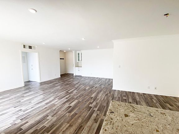 Freshly painted walls and finished wood kitchen cabinets, coriander counter top in kitchen, vinyl wood flooring in entry, living room, kitchen, bedroom & bath, ceramic tile shower & tub surround, custom crown moulding in living room and bedroom, Private balcony/patio, swimming pool, subterranean parking with electric gated access, laundry room on-site, assigned parking space. Owener pays for water, trash disposal, sewer. Renter pays for water and electric. No smoking at premises.