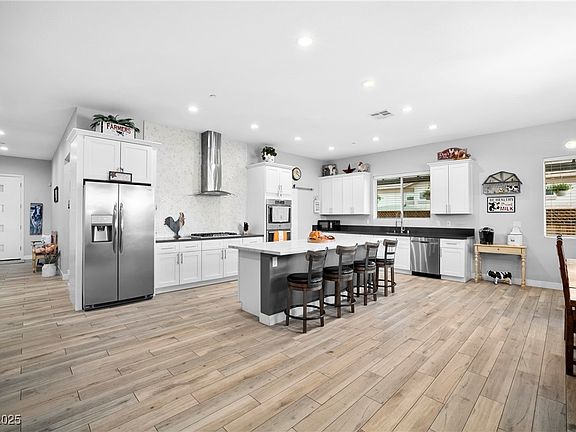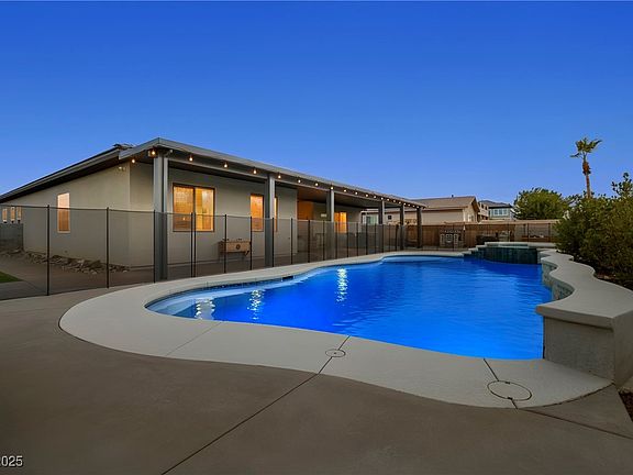 Discover this custom single-story Las Vegas home on an almost ½-acre lot with NO HOA, full RV parking, and Strip/city/mountain views. This turn key 4-bedroom home features: an open floor plan, two-tone quartz counters, white cabinetry, wood-tile flooring, new carpet, and great natural light. Enjoy an oversized 3-car garage, an 80’ x 24’ gated RV pad, and a workshop for storage or hobbies. The backyard offers a newly installed sparkling pool and spa, large grass area, covered patio, and space to expand. Installed solar adds energy savings. Single-story homes with no HOA, half-acre lots, RV parking, pool, and views are rare—this one checks every box for buyers seeking land, privacy, and a move-in-ready modern home.