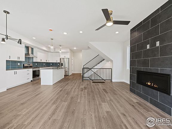 Welcome to The Kenai Willow model, your modern retreat in the highly desirable Old Town North with sweeping views from the expansive Rooftop deck! This stunning contemporary 2-story home features luxurious finishes, soaring vaulted ceilings, and an open-concept layout that's perfect for everyday living and entertaining. The gourmet kitchen boasts a large island, stainless steel appliances, gas range with hood, and an inviting eat-in dining area with a sleek gas fireplace. It flows seamlessly into the living and dining spaces, creating an ideal setting for connection and comfort. Upstairs, are 3 spacious bedrooms, including a beautiful Primary Suite with a Balcony and Spa-inspired bath. Two additional bedrooms share yet another Balcony and Full Bath, while the Upper-level Laundry adds convenience. A Finished Basement includes a 4th Bedroom and Full Guest Bath-great for visitors or additional rental income. Enjoy Multiple Outdoor Living Spaces, including a spacious rooftop deck with of the Foothills-perfect for entertaining or relaxing under the Colorado sky. The 2-car garage with alley access and an HOA that covers trash, basic cable, and internet make for easy living. Located just steps from the Poudre River Whitewater Park, scenic trails, breweries, and downtown Fort Collins. Photos are Renderings of the Kenai Juniper model and are labeled as such of the previous home, not of the actual home being built, finishes may vary. Under Construction with a December completion date!