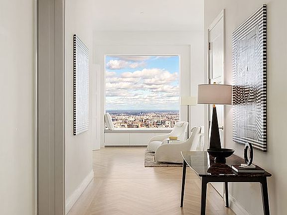 As you enter through your private elevator landing, you are welcomed into an immaculate interior featuring a grand 25-foot gallery perfect for displaying art. The residence is bathed in natural light, highlighting the airy 12’6” ceilings and refined finishes throughout. Seven 10' x 10' picture windows facing East and North frame awe-inspiring vistas of Central Park, the East River, and beyond.