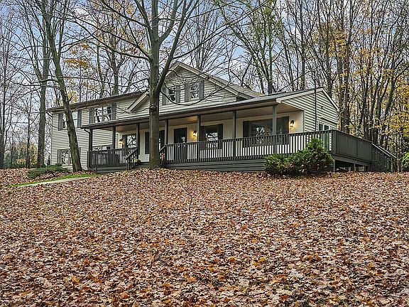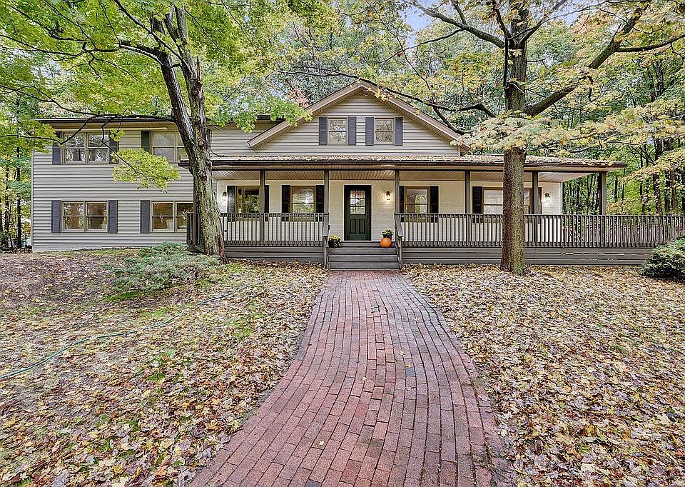 Move-in ready, remodeled house on a magnificent acre w mature trees for privacy and tranquility. Enter the home from a wraparound porch into the huge new kitchen w/ vaulted ceilings & skylights. A large, open floor-plan dining/living room with full bathroom. There's a gigantic walk-out bonus living room space for relaxing/entertaining. 2nd floor has 4 spacious bedrooms with a full bath. Any bedroom could be a home office. A private primary suite, with vaulted ceiling, exposed beams, large bath, and 2 walkin closets. Eco-friendly, fossil fuel-free, modern finishes with original character. ALL NEW: Kitchen - cabinetry, quartz countertops, stone tile backsplash, and appliances Tiled bathrooms Energy-efficient, Mitsubishi heat pump mini-splits for heating/cooling Large bathroom w/ glass shower and soaking tub 2 walk-in closets for primary bedroom Washer/dryer Updated electric High-efficiency hybrid electric heat pump hot water heater Huge, finished walkout bonus living room. In spring, summer, and fall, the light dances through the leaves of the majestic 100+ year-old oaks and maples. The fall colors are unreal! This is a magnificent HOME with nothing to do but move in.
