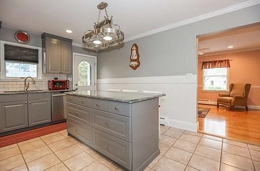 - Kit Dscrp: Dining Area, Countertops - Stone/Granite/Solid, Flooring - Stone/Ceramic Tile, Kitchen Island, Stainless Steel Appliances, Recessed Lighting, Slider, Exterior Access, Chair Rail, Wainscoting