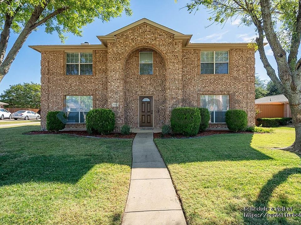 Welcome to 432 Ponderosa Trail, a charming two-story residence nestled in the heart of Murphy, TX. This beautifully maintained home features a striking brick exterior and is surrounded by mature trees, offering both curb appeal and shade. Inside, you'll find a spacious and open floor plan with abundant natural light, highlighted by sleek hardwood floors and modern finishes. The inviting living area boasts a cozy fireplace, perfect for relaxing evenings, while the adjacent dining space is ideal for entertaining guests.