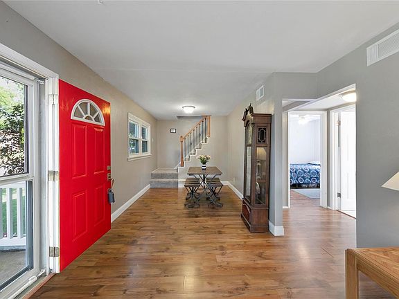 THE RED DOOR HOME! This adorable 4 bdrm, 2 bath home is move in ready!. Hard wood floors on main floor and new carpet upstairs. Main floor laundry, main floor bedroom and main floor full bath!. Upstairs are 3 other bedrooms and another full bath. Vinyl tilt-in double hung windows let in natural light throughout home. Perfect time to enjoy the freshly landscaped yard. Driveway runs to side of home for plenty of off-street parking. Walk out of kitchen to your EXPANSIVE fenced in, level yard. Big patio space for entertaining, BBQ or sitting outside after a long day. COME SEE YOUR NEW HOME !
