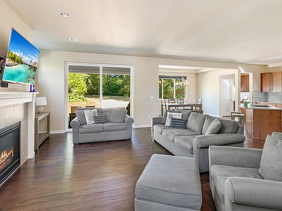 You will love this gorgeous home offering 5 bdrms + bonus rm on a shy 1/2-acre corner lot. Grand entrance w/ soaring ceilings & engineered hardwood flrs welcomes you in. Family rm w/ gas fireplace for ambiance & those chilly winter nights. Chefs kitchen w/ SS appliances, butlers & walk-in pantry, granite counters, island w/ undermount sink & alder cabinets w/ soft close drawers & crown molding. Dining rm w/ tray ceiling. Main flr guest bdrm & 3/4 bth. Primary suite w/ vaulted ceiling & 5-piece bth w/ 2 walk-in closets, 2 vanities, soaking tub & tiled shower w/ dual shower heads. Huge private backyard w/ covered patio & gas fireplace. Leafless gutter system. 3 car garage. Excellent location in Ridgeview. Mins to I5, JBLM, schools & shopping.