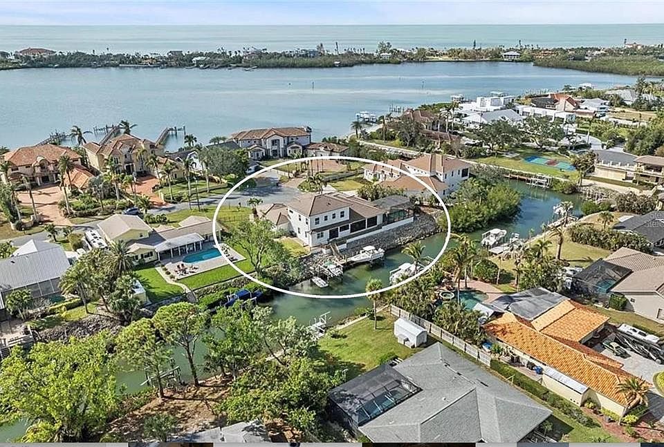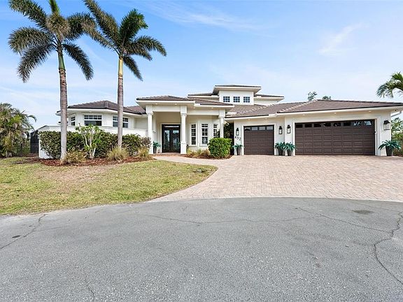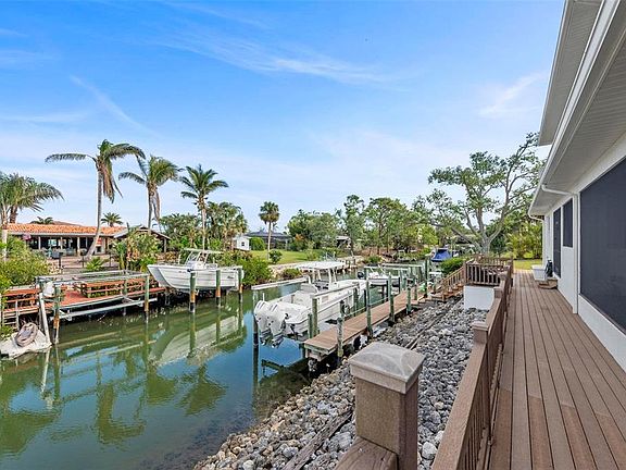 Experience the ultimate boating lifestyle from this custom-built waterfront home on a peaceful cul-de-sac. Sitting high and dry at 12 feet, the home was fully renovated for it’s current owners in 2020. Built well after the 2002 Florida Building Code changes (which required structures to be engineered for improved hurricane resistance, including impact windows, elevated designs and a more stringent building code), gives you peace of mind and makes the home easier to insure than an older home. An elegant design featuring high ceilings and engineered hardwood floors leads to a stunning outdoor retreat. The home's extensive glass windows and sliding doors create a seamless transition to your oversized entertainment area and screened lanai. This outdoor oasis features a heated saltwater pool, outdoor kitchen with Alfresco built-in grill, built in speakers, propane fireplace and TV—ideal for entertaining against the canal backdrop. With 190 feet of waterfront, one house away from the intracoastal, and no fixed bridges to the Gulf, this property is a boater's paradise. Featuring a 10,000 lb primary boat lift, a 5,000 lb double jet ski lift, a fish station, and a 70-foot Trex dock equipped with water and power. Whether you prefer boating, kayaking, paddleboarding, fishing, or simply lounging by the pool, this outdoor space is designed for all-day enjoyment. The chef's dream kitchen was fully remodeled in 2020 with both serious cooks and entertaining in mind, showcasing double islands, quartz countertops, and top-of-the-line Wolf/Subzero appliances, including an induction cooktop, convection microwave, convection steam oven, wine fridge, and an oversized built-in refrigerator. A walk-in wet pantry with an ice maker and espresso machine hookup completes this culinary haven. The luxurious main floor primary suite features a spa-like bathroom with a double showerhead walk-through shower, a jetted soaker tub, double sinks, and three spacious walk-in closets. Enjoy the seamless transition to the pool area through French doors, or retreat to the connected office adorned with smart electric blinds and built-in desk and cabinetry. Upstairs you’ll find two oversized bedrooms, each with its own full ensuite and a loft area with vaulted ceilings and a wet bar. The upstairs provides complete privacy for your family or guests. Every detail has been carefully crafted, from the tray ceilings and crown molding to engineered hardwood floors and LED lighting. Even the 4 car garage has built in storage, a work bench, high ceilings, epoxy floors and 2 EV charging ports! Recent upgrades include exterior painting, a new flat tile roof at the end of 2023 (these upgrades alone were over $118,000). With all major updates already done, there is nothing left to do but move in and enjoy this exquisite waterfront retreat. Schedule your private tour today.
