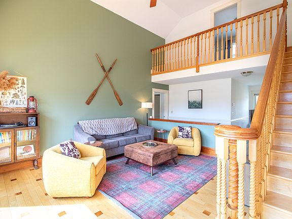 Don't miss the chance to be just around the corner from Lake Willoughby's North Beach. Willoughby is arguably one of the most beautiful lakes in New England. It is 5 miles from North to South and covers 1,687 acres with a max depth over 300'. Built in 1996, newly renovated in 2020, this contemporary home offers almost 1,700 square feet of living space. A vaulted ceiling, custom hardwood flooring, and natural light flooding through the triple windows combine to create an inviting feel in the living room. The U-shaped kitchen features solid cherry wood cabinetry and dark marble counters complemented by a white tile backsplash. Open to the kitchen, the dining area provides direct access to the south facing wrap-around deck, convenient for those barbecues you're sure to have. The primary bedroom suite includes a full bath with custom vanity, huge walk-in closet, and access to the deck overlooking the yard and fire pit area. Also on the main level is a 3/4 bath and mudroom entry with storage. A guest bedroom with 1/2 bath is located on the second level. Set on 4.3 acres 1/4 mile from the beach, and 1.4 miles from the public boat launch, and with a multitude of trailheads within a short drive, ideal for outdoorsman. In addition two golf courses, Orleans Country Club and Barton Gold Club, are less than 15 minutes away. Owners have had great success with rentals. Offered with 2.76 ac. for $399,000. Excellent rental history!!!