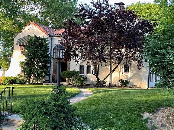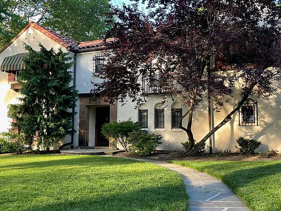 If classic Spanish Mission is your style, then this home is for you. The exterior features smooth coat stucco and barrel tile roofing. From the moment you walk through the unique front door with stained glass inset, you are enveloped in Old World charm. The foyer is rich with dark stained red oak wood trim, coat closet and switchback stairs with wrought iron and wood railings. There is a stained glass window on the landing that brings natural light into the space. The first floor public rooms harken to days gone by with the random width pegged flooring, stunning millwork and built-ins. Arches in the foyer frame the entries to both the living and dining rooms. The living room features plaster and beam ceiling with artisan carved details that flank both sides of the room. Imagine cold winter nights gathered around the large Rumford wood-burning fireplace with stone surround, mantle and hearth. Off the living room is a four-season conservatory for all things green and tranquil. The conservatory has a brick floor and access to the walled courtyard and patio. Entertain friends and family in the spacious dining room that is just off the kitchen. The eat-in-kitchen is large with a new built-in (08/23) refrigerator, 5 burner electric cooktop and double wall ovens. There is ample cabinet space and access to the basement and center foyer with a Dutch door to the rear courtyard. Up a few steps from the kitchen in the more casual light filled den with attached powder room. On the second floor you'll find original hardwood flooring throughout. The primary bedroom includes an oversized casement window with Juliette Balcony, an en suite bath and closets. Attached to the primary is an attached sitting room that could also be used as a home office. There are two more large bedrooms and an updated hall bath designed in keeping with the character of the home. The home has gas fired hot water heat and newer two zone central air conditioning. The full basement has exterior access, the laundry and plenty of storage space. There is an attached oversized one car garage.