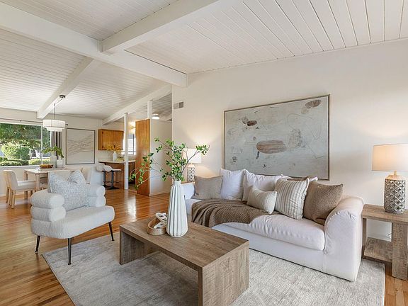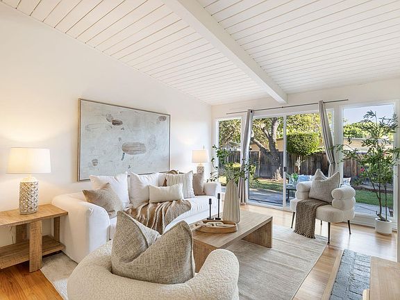 Nestled in the desirable Monta Loma neighborhood of Mountain View, this charming move-in ready home blends comfort, light, and style. The open and airy floor plan showcases high beamed ceilings and large windows that fill the home with natural light throughout the day. The spacious living room includes a cozy fireplace, a large sliding glass door leading to the outdoor space, and a formal dining area conveniently located next to the kitchen - perfect for everyday living and entertaining.This lovely home offers 3 BR, 2 baths, and a two-car attached garage. All bedrooms are ideally situated toward the back of the home for added privacy. The primary suite enjoys direct access to the peaceful backyard, while the 2nd BR overlooks the lush garden. Step outside to a private backyard oasis, perfect for gardening, family gatherings, or quiet relaxation. A prolific grapefruit tree adds charm and seasonal delight, offering fresh fruit right from your own garden. Ideally located just minutes from shopping, dining, and local parks, with easy access to Caltrain, major highways, and public transportation, this home offers both tranquility and convenience. Close to Google and other leading tech companies, and with the top-rated Los Altos High School, its a wonderful place to call home.