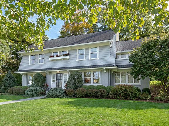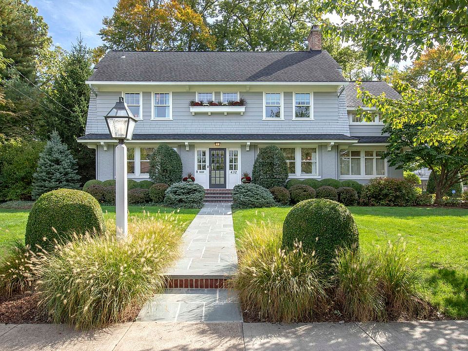 Location. Lifestyle. Luxury. Beautifully appointed interiors. Classic elegance. This center hall colonial blends classic architectural Details with modern amenities. Situated on one of only a few flat streets in Maplewood, it's just three-quarters of a mile from the train and village. The foyer, with leaded glass windows and newly refinished hardwood floors, leads to a spacious living room featuring leaded glass shelves and a wood-burning fireplace. Adjacent is a family room, perfect for relaxing. The formal dining room is ideal for large gathering dinners. A chef's eat-in kitchen BOAsts high-end appliances, granite countertops, and a banquette. Additional features include a pantry with a wine refrigerator. The finished basement with a powder room, perfect for a playroom or game room, includes a separate laundry room. The second floor has four bedrooms and a bonus room with a cathedral ceiling, a brick chimney wall and an antique, leaded glass window. The primary bedroom has a walk-in closet and renovated bath. A renovated hallway bath has a double vanity and full tub. The third floor features a private, ensuite bedroom. A large patio overlooks an expansive backyard. The detached three-bay garage includes a climbing wall and loft. A backyard gate provides access to a coveted private back lane where neighbors gather to socialize and play.
