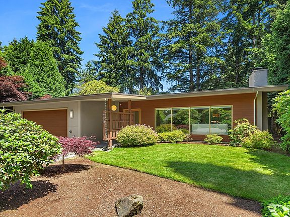 Discover the charm of mid-century living in this elegant rambler, nestled amidst mature rhododendrons. Step inside to gleaming hardwood floors that flow throughout the home. The remodeled kitchen boasts penny round tile and modern amenities, perfect for culinary enthusiasts. With 4 spacious bedrooms, including a primary suite with an ensuite bath, and two additional baths, this home offers comfort for all. Enjoy the expansive, flat backyard—ideal for outdoor gatherings. The finished garage provides versatile space as a media/rec room or can be easily converted back.Walking distance to the MI Library and MIHS. Your dream home awaits!