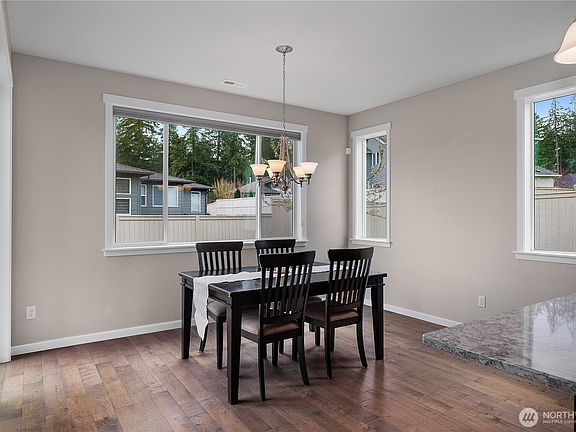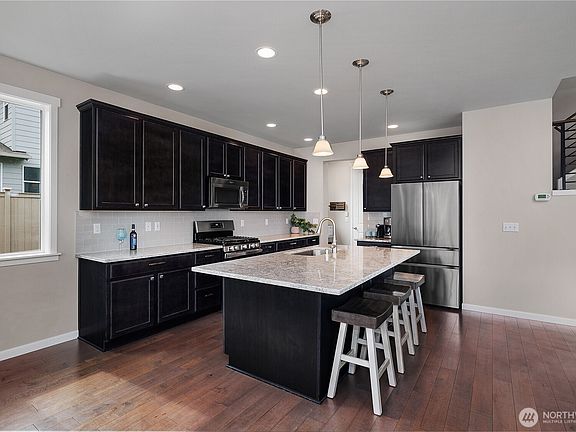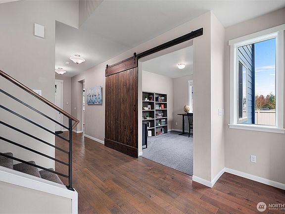 Welcome to this beautiful home located in the Campus Fairways community, nestled between the Woodlands Golf Course at Hawks Prairie. With 2664sf of living space, this home features 4 bd, 3 ba, large bonus room, as well as a dedicated office – ideal for remote work. The main floor guest suite offers ultimate privacy for visitors. The home provides extra space as it sits on a corner lot. Recent upgrades include brand-new exterior paint, fridge and stove. The modern tankless water heater provides energy efficiency and comfort. Stay cool year-round with the added bonus of A/C, and enjoy the serene surroundings of the golf course community. This home combines comfort, style, and convenience! Easy travel to JBLM, shopping, schools, and more!