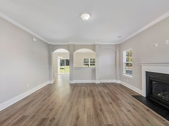 The Langford is a two-story home with five bedrooms and two-and-one-half baths. The foyer opens to the large great room and arched openings lead to the kitchen and dining area. An office/bedroom and private powder room are also located on the main floor. Three upstairs secondary bedrooms all feature large closets. The primary suite features a sitting area, a large walk-in closet, and a primary bath with a water closet and plentiful storage. This home also includes a fireplace, a covered back patio with additional concrete, and a utility sink in the garage. All on a nearly half-acre homesite that backs up to trees.