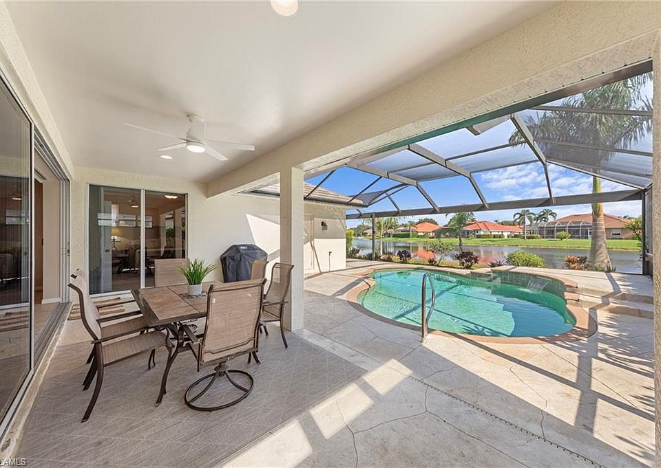 Welcome to this beautiful pool home in the highly sought-after community of Longshore Lakes, Naples! This impeccably clean, well maintained, 3 Bedroom 2 Bathroom home with 2 Car Garage offers unbelievable sparkling lakefront views making this property the place you will want to spend most of your time! The home offers a light and bright open floor plan, with spacious rooms and high ceilings, and is being offered furnished. Important Updates include a NEW Roof 2019, NEWER Pool Cage with Picture Window, NEW A/C 2023, NEWER Water Heater. Longshore Lake is a beautiful community, and offers many incredible amenities including Clubhouse and Restaurant, Fitness Center, Professional Tennis Programs, Pickleball and over 88 Acres of Lakes for Boating/Kayaking. Located in a PRIME North Naples location, the home offers QUICK ACCESS to shopping, dining, beaches, and EVERYTHING that the area has to offer! BOOK YOUR SHOWING TODAY and DO NOT MISS the attached 3-D TOUR!