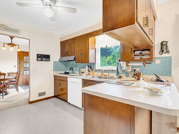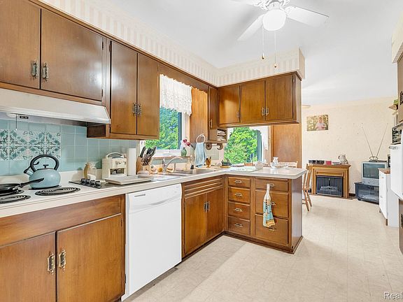 Spacious and well-maintained 3 bedroom, 3 bath brick ranch featuring an attached garage and a cozy fireplace in the living room. This inviting home offers a bright 3-season room off the back, leading to a large deck—perfect for outdoor dining and entertaining. The walk-out basement is fully finished with classic wood paneling throughout, a second kitchen, and a full bath, offering excellent potential for a guest suite or in-law setup. The primary suite includes a private on-suite bathroom for added comfort. Outside, enjoy a generous, fully fenced backyard—ideal for pets, play, or gardening. This home combines functionality, character, and space in one desirable package.