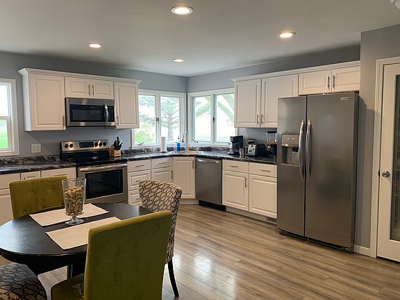 WOW..this one has been updated! Beautiful new kitchen with loads of storage, and room for a table. There's a dining room/living room area off the kitchen. Upstairs are three bedrooms. Under carpet is original hardwood. Lower level is a huge walk-out rec room AND there is also a basement! This sits on almost a half acre in the WL school district. 22x28 garage was raised and added. Check it out! No contract to deed or rentals at this time
