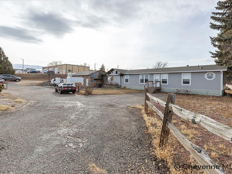 Investment/Development Opportunity! 1.02 Acres with 162 feet of frontage on Ridge Road with plenty of exposure to the east side of the lot near the Dell Range intersection, a major hub in Cheyenne for various commercial enterprises. The west boundary runs along Darnell Place, lending a residential aspect to a future developer. Currently, the property features a spacious three bedroom, two bath, manufactured home attached to the property in 2002. The property has great rental history and could be returned to that use with renovation to the south exterior wall. No apparent interior damage due to the fire, but the unit is no longer connected by electrical and will not be until demolition is completed and electrical work begins. Since all units are attached, when unit 2 is ripped away by demolition, it will reveal the southern outer wall for unit three which will need to be renovated. The shop could be used as an oversized 2-car garage, serving the residence, or could be used as a mechanic shop as it had been in the past with some repairs due to the fire. The center units were completely destroyed in the fire and will need full demolition. The seller has stated that the center units will continue to undergo demolition and costs incurred will result in periodic price increases. Currently, the property is on a well & septic system all in working order, though the water well currently does not have power. The well water tests high for nitrates and the seller installed a Reverse Osmosis system in the residence to mitigate the issue. The property currently has portions in the FEMA 100 year and 500 year flood plain. Current zoning is MR. Buyers are highly encouraged to engage proper due diligence before submitting an offer. The center units continue to be in demolition process, and all prospective buyers and buyers agents accept all risk of injury involved in viewing the property and are instructed to keep out of that area due to safety concerns. Property is offered in As Is, Where Is condition.