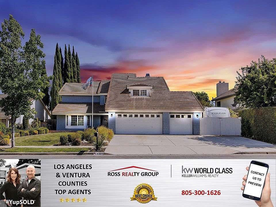 ***Call 805-300-1626 for your showing*** Exclusively represented by The ROSS REALTY GROUP at Keller Williams. Tucked into the Forest Hills neighborhood on the east side of Simi Valley, this beautifully updated home has four bedrooms, three baths, RV/Boat parking, providing everything you need to balance life and work. The 2,373 SF layout presents a light-filled great room with travertine flooring flowing throughout the first level. In the tasteful kitchen find granite countertops, stone tile backsplash, eat-in dining, stainless appliances and the convenience of a walk-in pantry. Wood beamed vaulted ceilings off the entry create an amazing space to entertain. Step outside to dine, BBQ, play and relax alongside a bonus storage space (possible man cave or she shed), RV access and calming mountain views. Amenities include central heat and air conditioning, indoor laundry, and an attached three-car garage. Fresh neutral paint, contemporary light fixtures and recessed LED lights provide a turnkey space to move right into. Your next home offers versatility to accommodate family and guests. Only 6 minutes to the San Fernando Valley with shopping, dining, schools, public parks and transportation nearby. For more information, visit The Ross Realty Group at https://agreatlistingagent.com/ or call 888-262-8811.