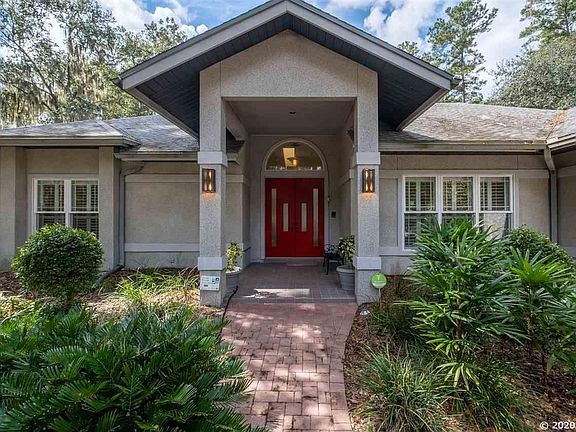 This 4 Bedroom, 3 Bathroom light filled pool home sits on almost an acre on a cul-de-sac in The Preserve. The home has new Pergo Presto floors, high ceilings and plenty of space for modern living. As you step into the foyer there is a spacious living room with a wall of glass overlooking the pool and a Formal Dining Room. The open, updated kitchen has quartz countertops, stainless appliances, a breakfast nook, computer area and is open to a Family/Great Room with a wood-burning fireplace that overlooks the pool. There is a large Laundry Room off the Kitchen as well as a Two-Car Garage. The house has a two-way split with the Owner's Suite, Bathroom and Walk-In Closet and 2nd Bedroom and Bathroom on one side of the house and two Bedrooms and a Bathroom with pool access on the other side. The expansive pool area is fully screened and has a summer kitchen ideal for cookouts and a covered lanai overlooking the beautifully landscaped backyard. The University of Florida has given this yard a Florida Friendly Landscaping designation. A brick driveway and walkway complete this move-in ready home just waiting for you!