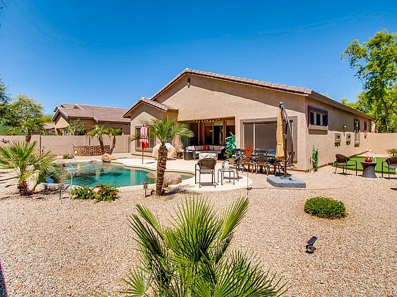 Call to see this turnkey move-in ready home. Lots of entertainment space in the Great Room plus a bonus Office/Game Room. Huge Master Suite with walk-in closet, great split from guest rooms, powder room, inside laundry, super clean garage, surround sound & more. Walk out to sparking PebbleTec pool with copper lion water feature. A custom putting green or tot play area. This lot is oversized no neighbors behind and enough space from road. It doesn't stop there there are more upgrades that matter NEWER AC, WATER HEATER, GRANITE IN KITCHEN, GARAGE CABINETS, SUNSCREENS, AND EXTERIOR PAINT. Don't miss out on this Power Ranch GEM!