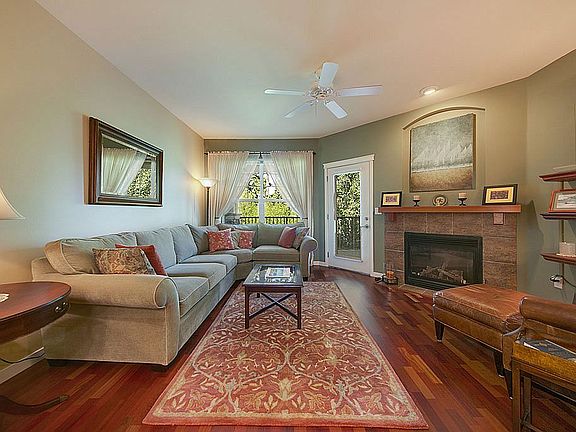 Welcome to highly desirable Jacob's Creek gated community! Beautiful 1,570 sq. ft. 3 bedrooms 2.75 bathrooms and a built–in office space end-unit condo backs to lush greenbelt. Stunning chef’s kitchen with granite counters, full backsplash and stainless steel appliances extends into well-appointed dining and living with cozy fireplace. Relax on huge covered decks of living room. Get pampered in spacious master suite with fireplace and luxurious master bath with heated floors. Additional features: gleaming hardwood floors, designer paint, walk-in closets in every room, two master suites. Enjoy nearby trails, Eastside amenities and top-rated schools. Pure perfection!