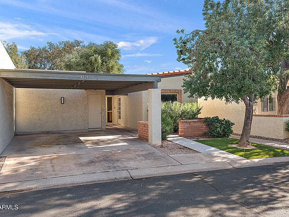 This remodeled townhome offers a rare blend of privacy, charm, and modern comfort in Phoenix's coveted Los Olivos community. This perfectly positioned end unit features a stunning back patio and is one of only four units that open directly into the main community greenbelt — a serene space filled with mature trees, lush grass, and a well-maintained tennis court. This unique setting creates the feeling of an expansive private backyard while offering easy access to the neighborhood's two gated pools and tennis court.