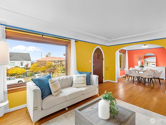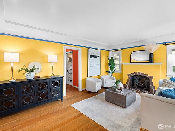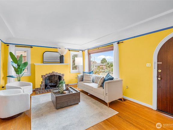 Fall in love with this enchanting Brick Tudor where period craftsmanship meets modern comfort. A stunning cathedral-style wood door greets you to the light-filled rooms with preserved original features and thoughtful upgrades. With 3 bedrooms, 2 baths, and a finished basement offering MIL or bonus bedroom(s) potential, the home is wonderfully versatile. Enjoy beautiful sunset and Olympic views, abundant storage & the calm of living on a Seattle “Healthy Street.” The private backyard oasis includes a charming built-in brick fireplace, while the detached garage and attached shop provide excellent storage and workspace. Fiber internet keeps you connected with ease!