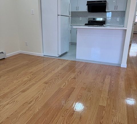 This beautiful Sun drecnched apartment is on the 3rd Floor - AN AMAZING Layout with Beautiful Natural Wood Flooring throughout ! Three Large Sized Bedrooms! A FORMAL Dining Area with an Italian Laquered Alpine White Kitchen with an Island!