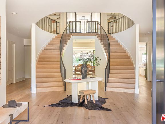 Behind gates and tall hedges South of the Boulevard, this celebrity-owned Encino estate spans over one acre. Fully renovated, the property welcomes you through grand gates and a spacious motor court to a main residence featuring a dramatic double staircase, multiple living areas, a private office, and a chef's kitchen that opens to the dining room and resort-style backyard. The basement level includes a state-of-the-art recording studio with its own private entrance. Upstairs, five en-suite bedrooms include a luxurious primary suite with dual closets, spa bath, and a terrace overlooking the grounds. Outside, enjoy a new pool and spa with waterfall and slide, a tennis court, putting green, covered dining patio with bbq area, fire pit, and a play area. A detached guest house offers a full gym, kitchen, and private guest quarters. A rare opportunity to own a secluded, resort-like compound in one of Encino's most coveted neighborhoods.