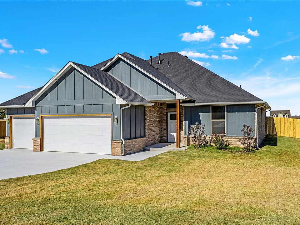 This NEW CONSTRUCTION HOME is back on the market. It now has full guttering and a fence. It is located in the ELGIN SCHOOL DISTRICT and sits on about a .5 acre lot. It has 4 bedrooms, 2.5 baths & a 3 car garage. Plus, this split floor plan has some unique features such as a large walk-in pantry and the closet in the primary ensuite connects to the laundry/mud room. And the brushed gold fixtures and interior finishes are stunning. For more information or to schedule a showing, call/text the Listing Realtor, TERRI STRECKER at 580-512-0615.