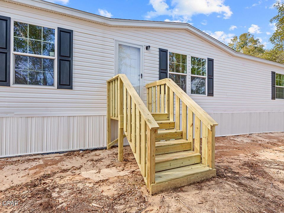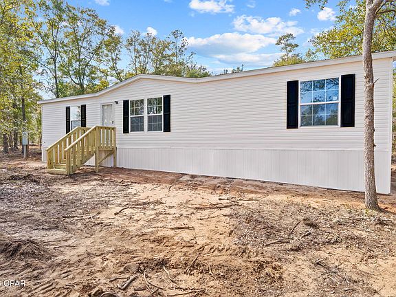 Welcome to this Brand New 2026 Model, 3 bedroom/2 bath manufactured home where trendy, black and white colors and finishes meet a HIGHLY functional design. The open-concept layout flows perfectly while the split-bedroom floorplan offers privacy and functionality for everyone at home! You'll love the spacious kitchen featuring stainless steel appliances, a nicely sized island, and ample cabinetry. The kitchen is open to the living and dining space making it suitable for large gatherings with your loved ones! The laundry room provides additional storage and extra space you'll actually enjoy using. As you enter the primary suite, you'll immediately enjoy the sq footage of this huge room! The primary bath offers a double vanity, huge two-person shower, and a large walk in closet. This new home sits on half an acre just waiting for you to add your personal touches after you call this place HOME! The front and backyard is level and clear directly around the home making it the perfect canvas for your outdoor storage needs. Location is key and this house is located about 2.5 miles (7 minutes) from Hwy 77. You'll have the ''country'' feel without being too far from all the attractions that Chipley, Lynn Haven, and Panama City have to offer! Come check it out!