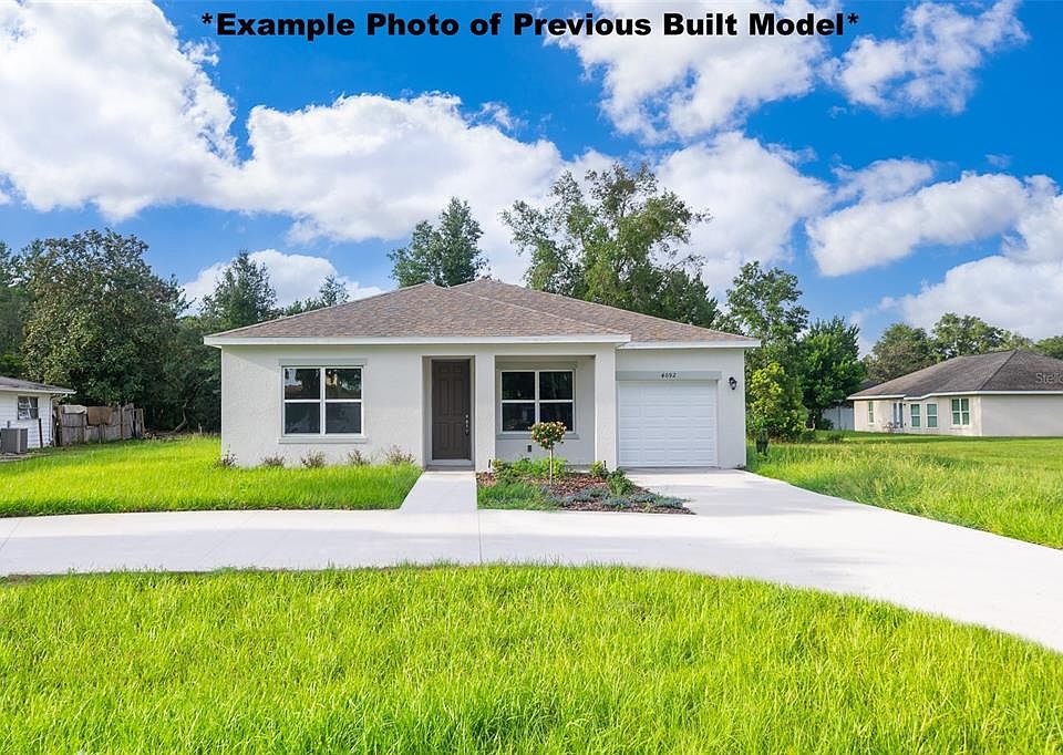 New construction just completed on this charming 4 bedroom 2 bathroom in a convenient central location. Kitchen showcases shaker wood cabinets with 42'' upper cabinets, granite countertops, cloudburst glass backsplash, and Samsung Stainless steel appliance package including washer and dryer. Top of the line Water and scratch resistant luxury vinyl plank flooring. Master suite features tray ceiling, designer tile bathroom with dual sink vanity, and walk-in & linen closet in bathroom. Other standout features include 8' Front door, french door open to the covered lanai, 9'4 standard ceiling height throughout the entire home. Circular Driveway for added parking and ease of entry and exit. Call today for your tour and make this house your home! PHOTOS ARE OF PRIOR COMPLETED MODEL FINISH COLORS ARE SLIGHTLY DIFFERENT.