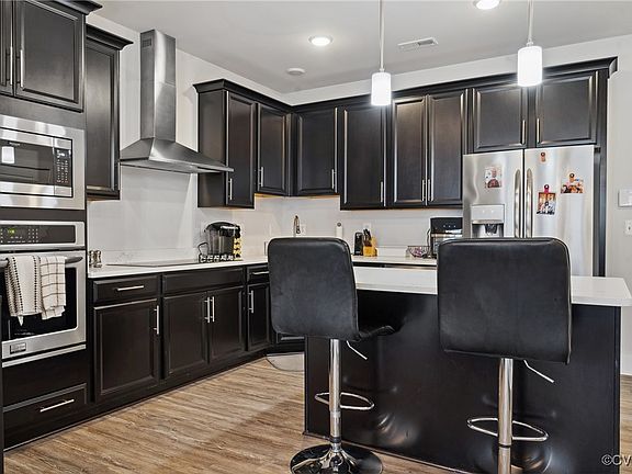 Welcome to this stunning, contemporary 2-level condo in the heart of Short Pump! The upgraded kitchen includes stainless steel appliances, wall oven, hooded range, deep espresso cabinets, and Quartz Island. Open & bright family room off of the kitchen. Luxury vinyl plank floor and half bath with pedestal sink on main level. The first floor provides direct access to the garage. The 2nd level has the Primary bedroom with an oversized walk-in closet with an en-suite bath. 2nd bedroom on this level, full size stackable washer and dryer, and bonus room leading to balcony that can be used as 2nd family room, exercise room, or office. Community amenities include pool, clubhouse, fitness center, outdoor pavilion with grills, playground, & walking trails. Enjoy the convenience of walking to nearby shopping & easy access to commuter routes such as GRTC, 288, I-64, I-295. and close proximity to top local destinations like Wegmans and Short Pump Town Center. Welcome Home!