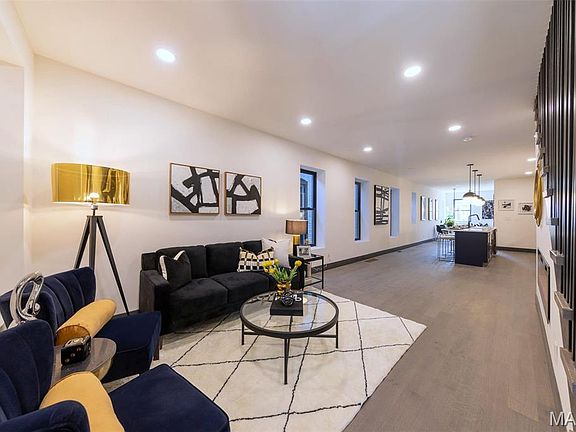 This fully renovated brick townhome blends classic architecture with modern luxury in the heart of Forest Park Southeast. It offers 3 bedrooms and 2.5 baths, with approx. 1,788 sq ft of living space. Features include high ceilings, engineered wood floors, designer fixtures, dimmable lighting, and a skylight over the stairs. A full renovation includes new windows, doors, and systems throughout. The open layout flows into an extra-large kitchen with solid wood soft-close cabinets, dark steel-finish appliances (including washer/dryer). The living space features an electric fireplace with adjustable flame colors and heat settings. The home also includes solid marble bathroom floors and modern finishes throughout. Enjoy a fenced backyard, off-street parking, and walkability to Forest Park, Barnes-Jewish Hospital Complex, The Botanical Gardens, The Cortex, and all of the shops and restaurants on Manchester. A move-in-ready home in one of St. Louis’ most vibrant neighborhoods.