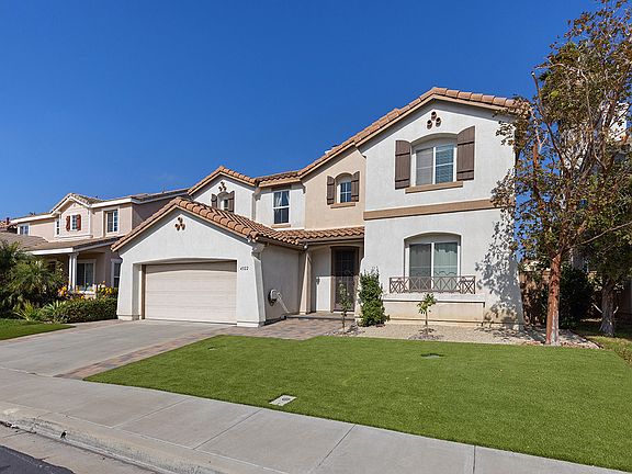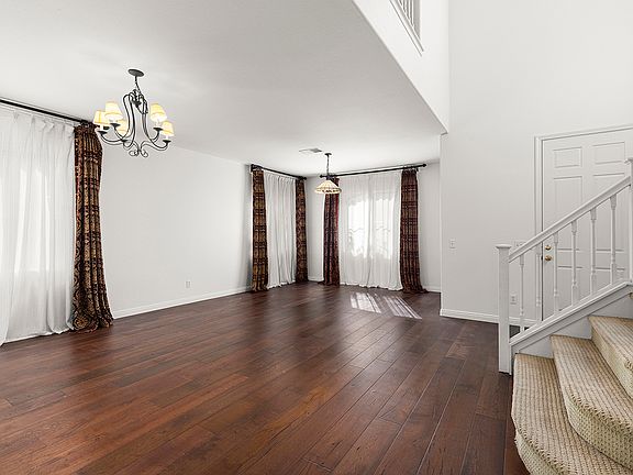 Riveting River Ranch estate in a coveted gated community featuring 5 bedrooms, 3 bathrooms with 1 full bedroom and bathroom downstairs. Exceptional hardwood floors downstairs and freshly painted interior brings you this spacious home. Upon entry you are greeted with your formal living and dining areas. Seamless flow to your chef's kitchen featuring upgraded counters, large center island, gas range, and pantry storage all open to your informal dining area and cozy family room. Private and refreshed landscaping in your entertainer's yard. Upstairs features your oversized primary bedroom and ensuite bathroom with dual sinks, separate tub and walk-in shower, and generous sized walk-in closet. 3 secondary bedrooms upstairs plus a loft, perfect for in home entertainment, relaxing, and more. 3 car attached tandem garage. Complex features a community pool, spa, greenbelts, playground, BBQ, and more.